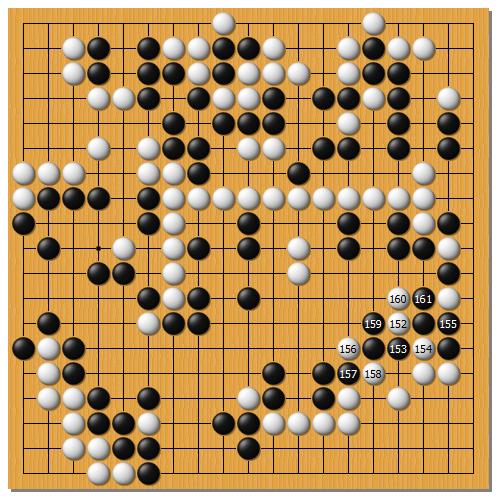 この時点で20目近い劣勢。逆転を狙って放ったのが152手目。