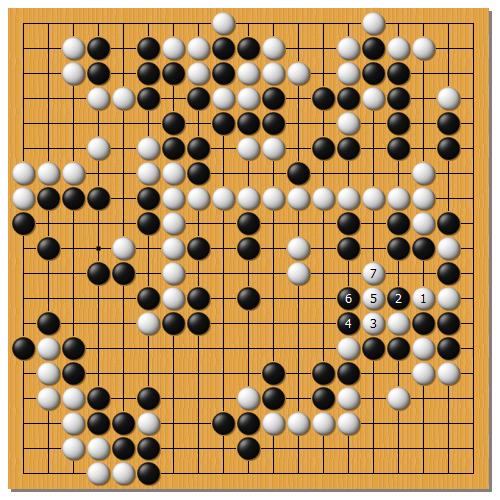 1と出る一手でした。2, 3と続き、