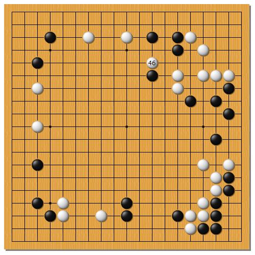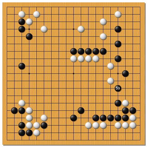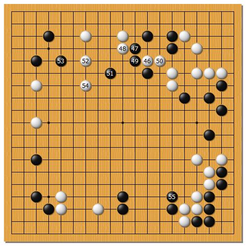 54まで進んで、55と打たれると、右下の白の一団が不安です。