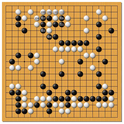 戦いを仕掛けるタイミングは難しいですが、この辺の駆け引きこそが碁の醍醐味だろうと、わかったようなことをいってみたり。